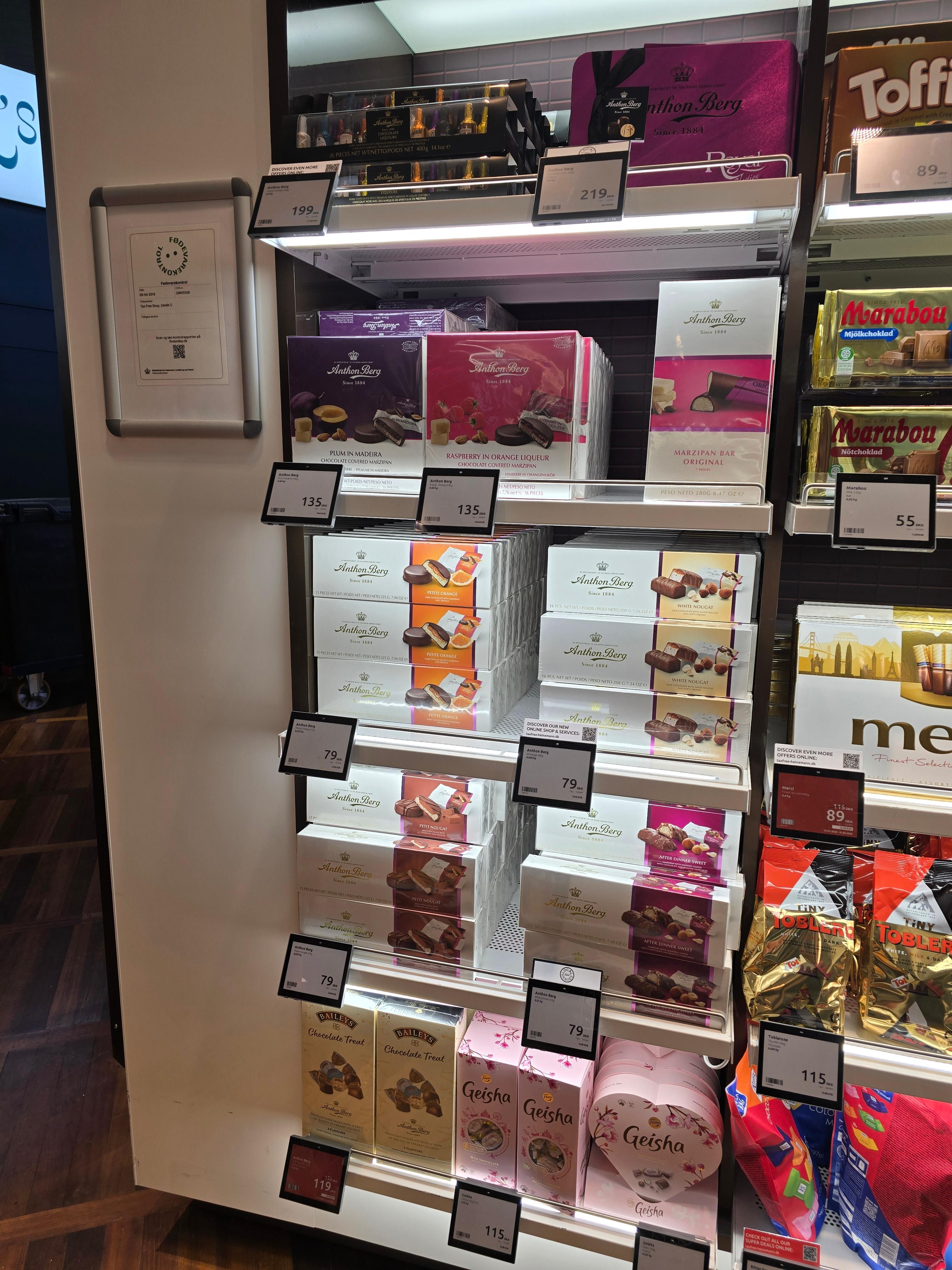 안톤 버그(Anton Berg)는 덴마크 초콜릿 브랜드로 유명한데, 원래 위스키 봉봉만 알고 있었는데 면세점에는 종류가 엄청 다양했다. 하지만 결국 다른 면세점공항에서 많이 구매해 본 위스키 봉봉을 선택했다.