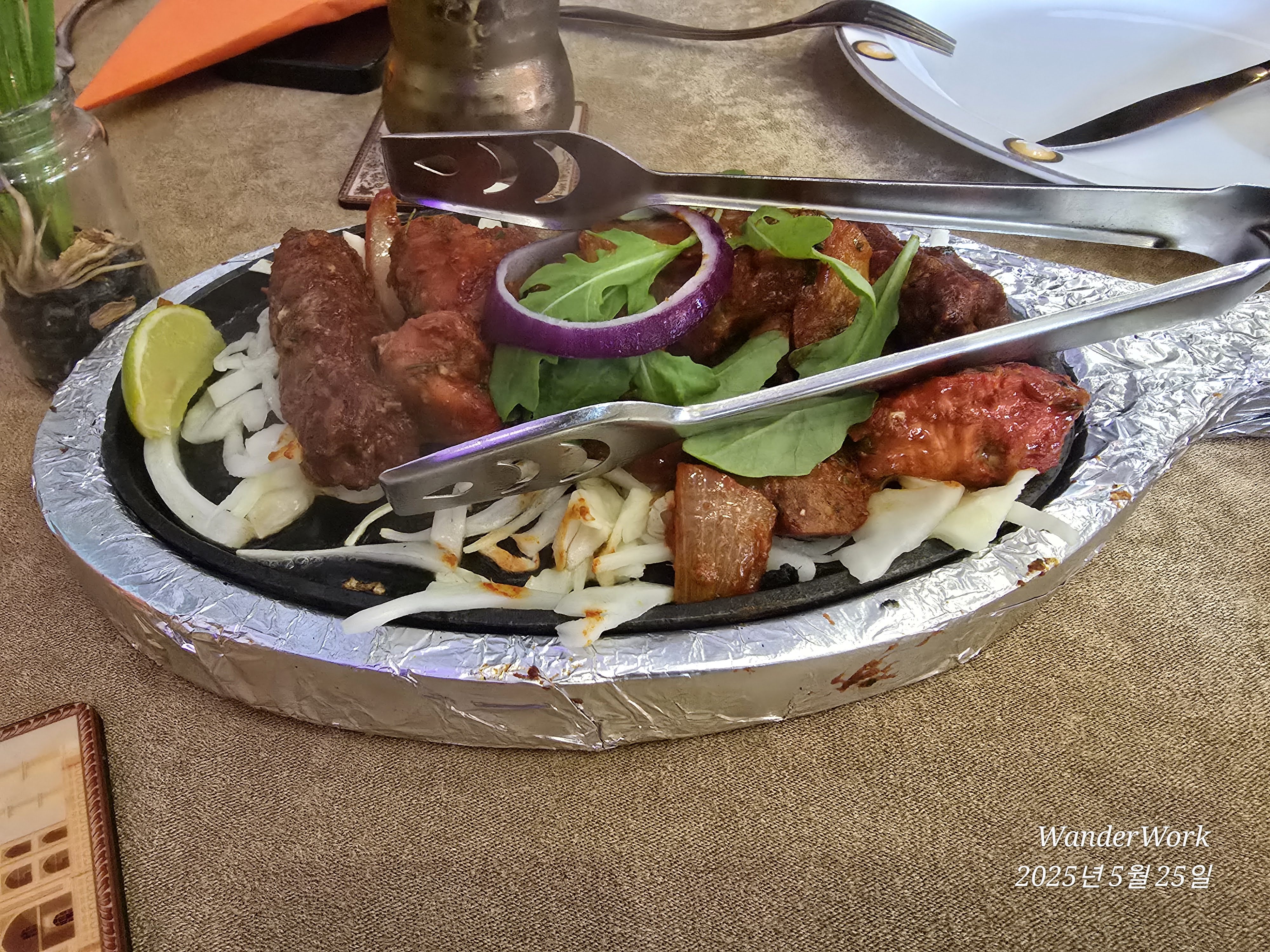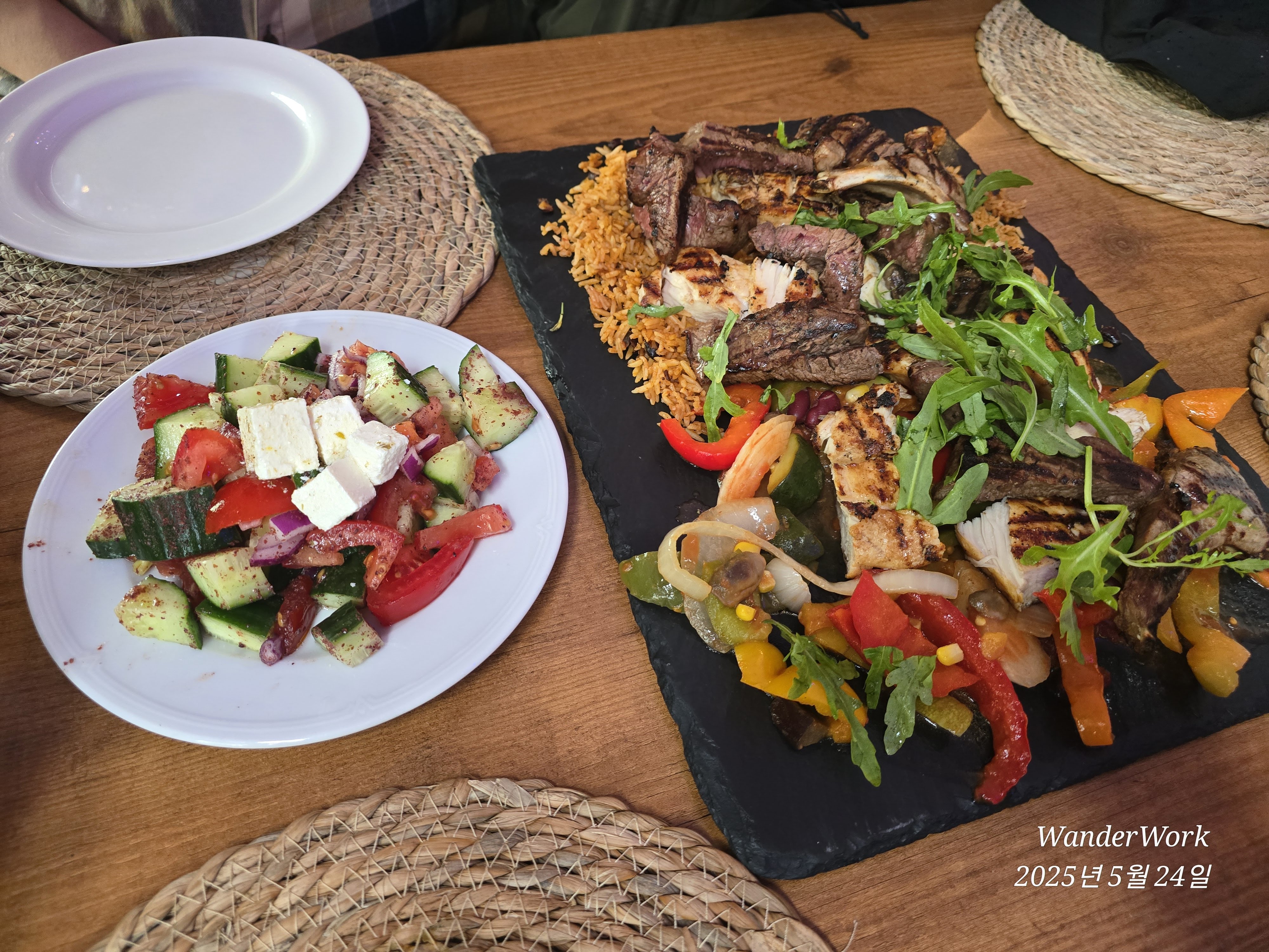 소고기 + 양고기 + 닭고기 스테이크가 한 접시에, 양도 정말 많았다.