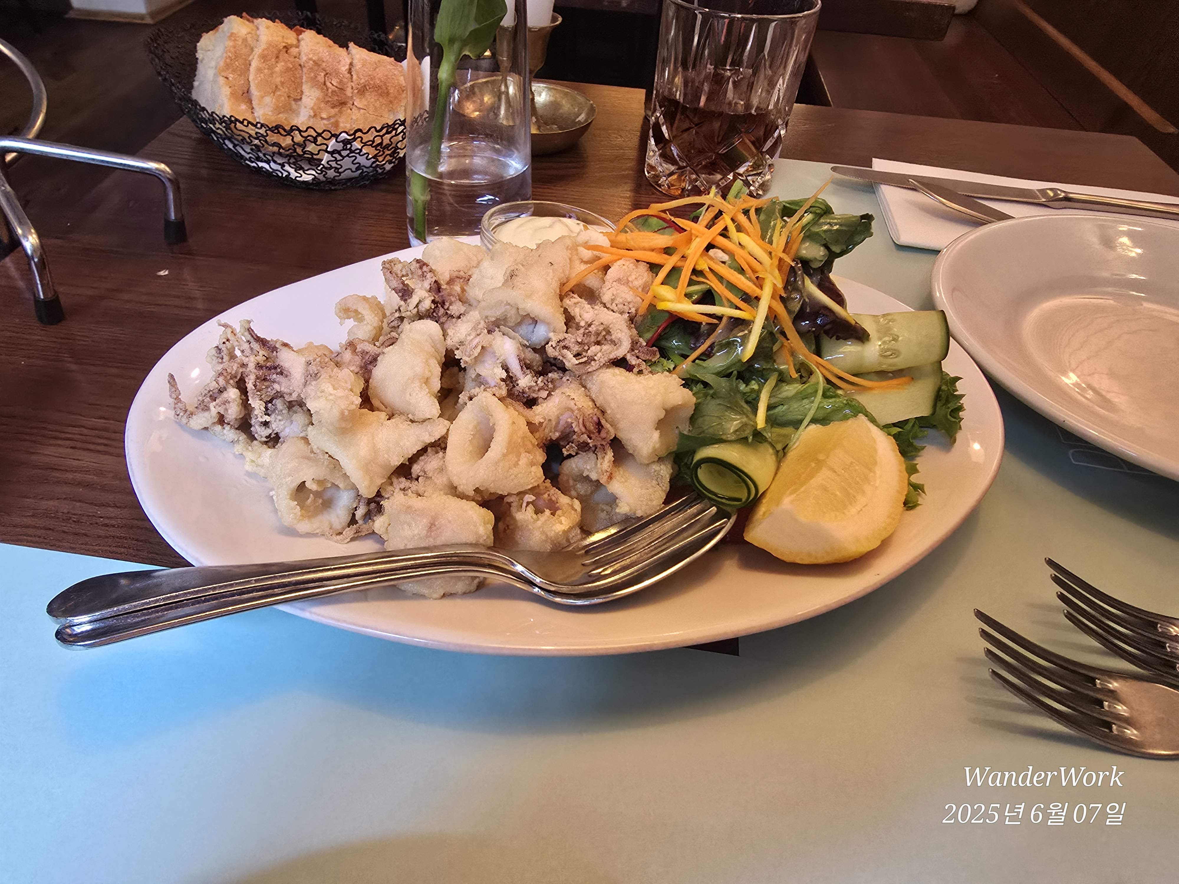 - 깔라마리 튀김 → 바삭하고 짜지 않아 가볍게 스타트로 좋음